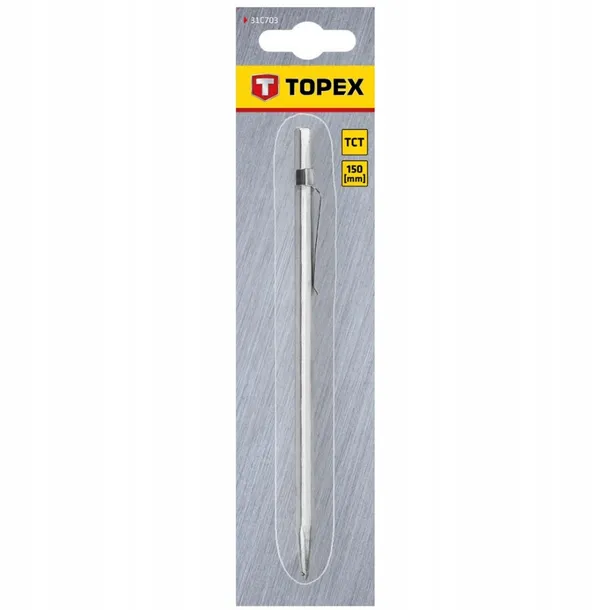 Rysik traserski TOPEX (nr ref. 31C703) o długości 150 mm. Znajduje swoje zastosowanie przy pracach budowlanych i instalacyjnych. Marka TOPEX skierowana jest do majsterkowiczów.