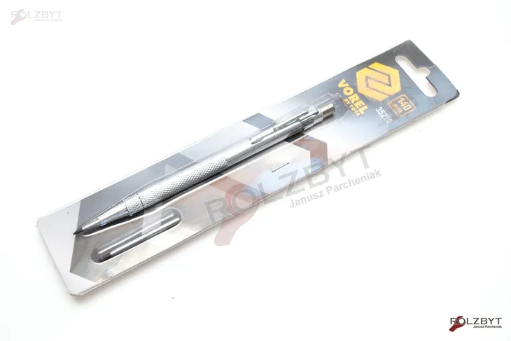 Rysik traserski przeznaczony jest do trwałego zaznaczania linii i punktów na powierzchni obrabianego materiału. Ostra końcówka robocza wykonana jest z wysokogatunkowej , hartowanej stali . Dzięki wysokiej twardości pozwala na zaznaczanie na powierzchni metali, szkła, ceramiki , drewna i tworzyw sztucznych. Dla wygody użytkownika, aluminiowy, moletowany korpus wyposażono w sprężynujący klips do przypinania . W zestawie dodatkowa, zapasowa iglica .