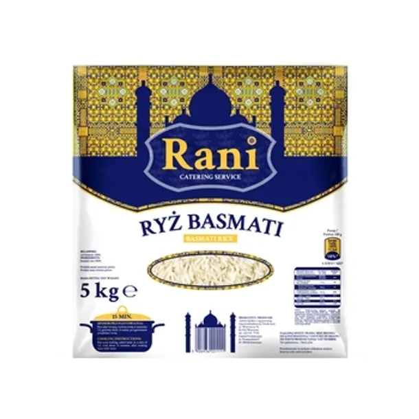 Ryż Basmati marki Rani uznawany jest za najszlachetniejszy na świecie. Uprawiany u podnóży Himalajów, dzięki żyzności tamtejszych gleb oraz specyficznemu mikroklimatowi nabiera niepowtarzalnego, subtelnego aromatu. W dosłownym tłumaczeniu "basmati" oznacza "pachnący ryż". Ma długie, smukłe, śnieżnobiałe ziarna, które podczas dotowania jeszcze bardziej się wydłużają. Ryż Basmati jest niezwykle sypki. Doskonale pasuje do dań z ryb, drobiu i mięsa. Jest niezastąpionym i niezwykle cenionym przez miłośników kuchni indyjskiej dodatkiem kulinarnym.