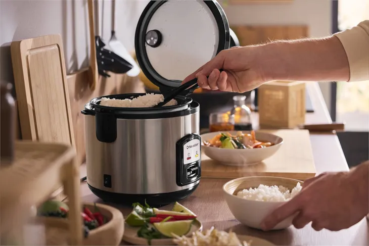 - Moc 400 W- Wydajna moc - 400 W - umożliwia szybkie i równomierne przygotowanie, dzięki czemu możesz cieszyć się idealnym, puszystym ryżem w mgnieniu oka.