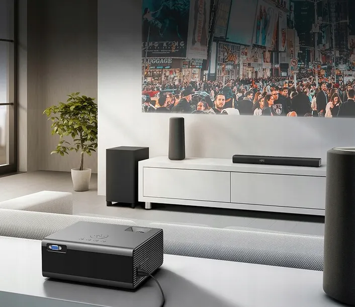 Projektor posiada moduł pozwalający na łączność przez Wi-Fi, dzięki czemu istnieje możliwość wygodnego, bezprzewodowego wyświetlania obrazu z telefonu, tableta, laptopa czy komputera stacjonarnego.