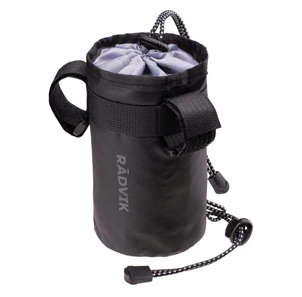 FLASKABAG marki Radvik posiada podwójne ścianki z warstwą termiczną. Warstwa termiczna ogranicza ogrzewanie się napoju albo jego wychłodzenie wewnątrz bidonu. Rzep oraz ściągacz umożliwiają przypięcie sakwy w miejscu wygodnym dla Ciebie.