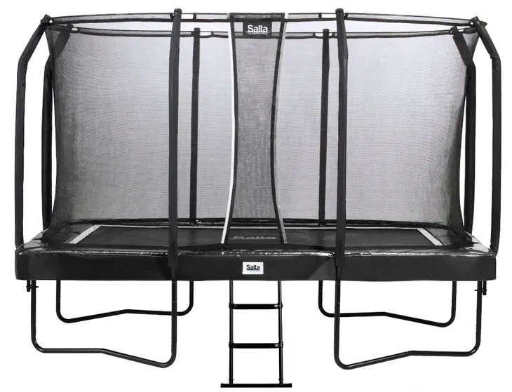 Trampolina wyposażona jest w drabinkę, dzięki czemu najmłodsi użytkownicy nie będą mieć problemu z wchodzeniem oraz chroniącą przed upadkiem, odporną na promieniowanie UV i wilgoć siatkę bezpieczeństwa zamykaną na zamek błyskawiczny uniemożliwiający jej przypadkowe otwarcie w trakcie wykonywania akrobacji.