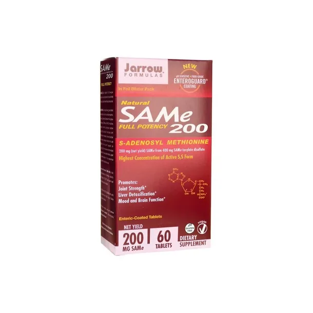 SAMe 200 zapewnia pełne 200 mg SAMe (wydajność netto) z 400 mg disiarczanu tosylanu SAMe.