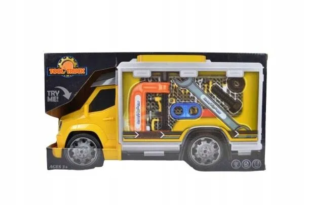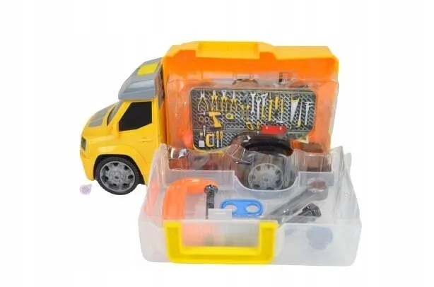 Fantastyczny mobilny warsztat samochodowy Tool Truck to idealna zabawka dla małych mechaników! Żółta ciężarówka z przezroczystą skrzynią ładunkową kryje w sobie kompletny zestaw narzędzi warsztatowych.