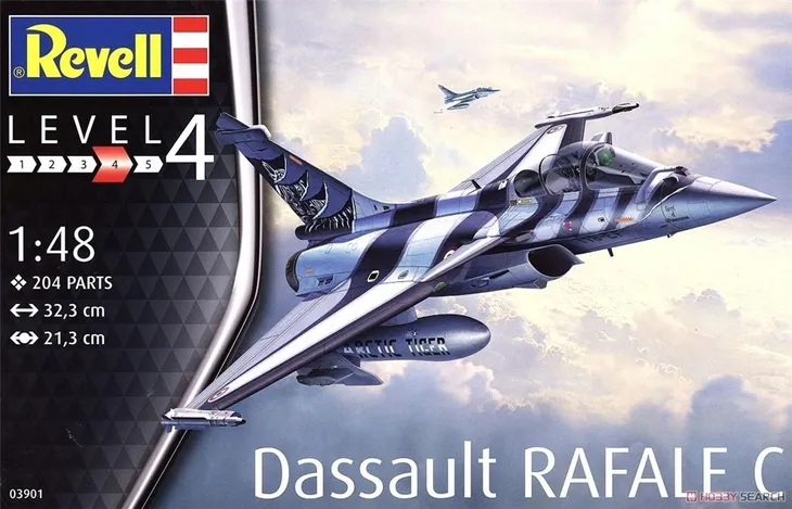Dassault Rafale dwusilnikowy wielozadaniowy samolot myśliwski ze skrzydłami typu delta, produkowany od lat 90. XX wieku przez francuską firmę Dassault Aviation. Model do sklejania, skala 1:48, wymiary modelu 32,3cm x 21,3cm.