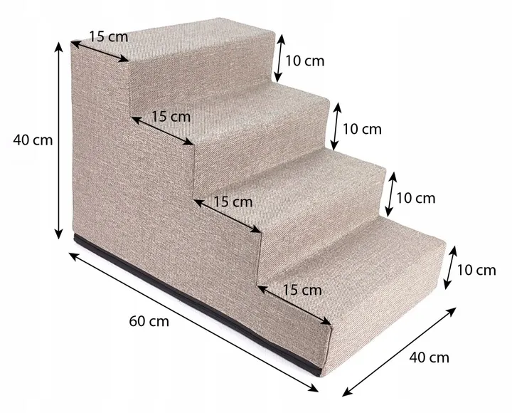 Pomimo kompaktowych rozmiarów 40 x 40 x 60 cm, schody oferują wygodny dostęp do ulubionych miejsc Twojego pupila. Ich uniwersalny design doskonale komponuje się z każdym wnętrzem, sprawiając, że są nie tylko praktyczne, ale również estetyczne.