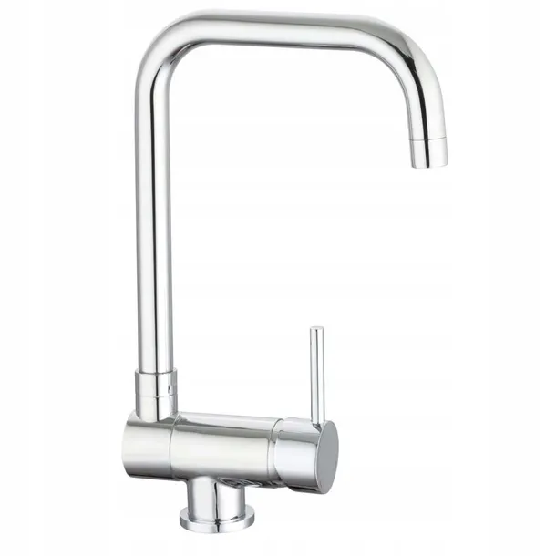 Elegancki, wolnostojący kran z wysoką, zakrzywioną wylewką i zakresem obrotu 360° zapewniającym elastyczne możliwości zastosowania