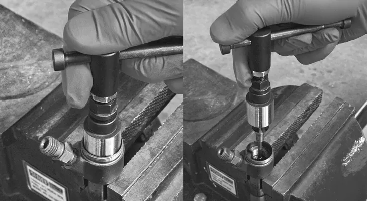 Ściągacz do demontażu wewnętrznej igły wtryskiwacza we wtryskiwaczach Common Rail firmy Bosch, Delphi, Denso, Siemens. Umożliwia łatwy demontaż wtryskiwacza w przypadku chęci wyciagnięcia, wkręcenia śruby, pogłębienia.