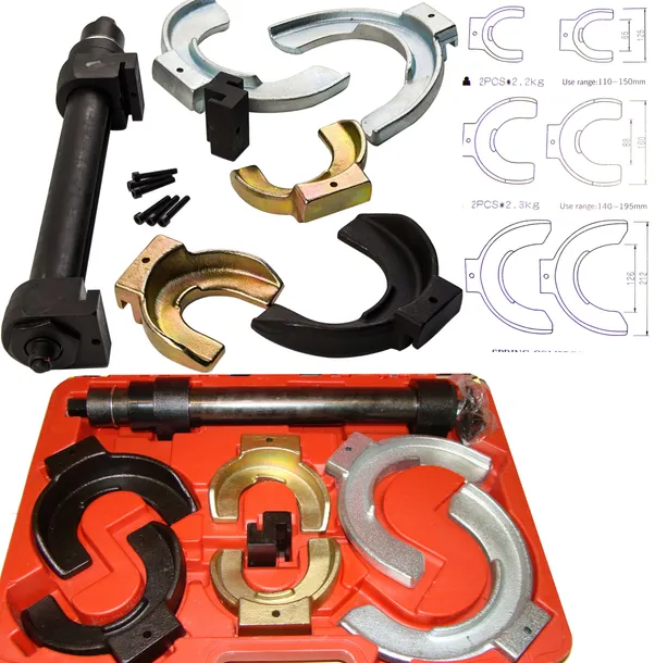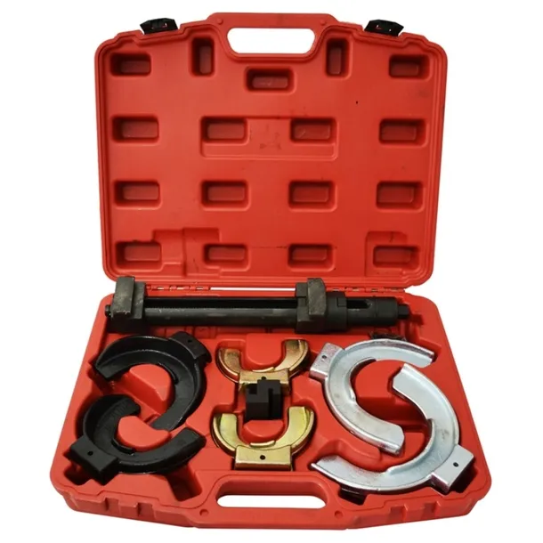 Profesjonalny ściągacz do sprężyn McPhersona z wymiennymi uchwytami. Zestaw 7-elementowy.
