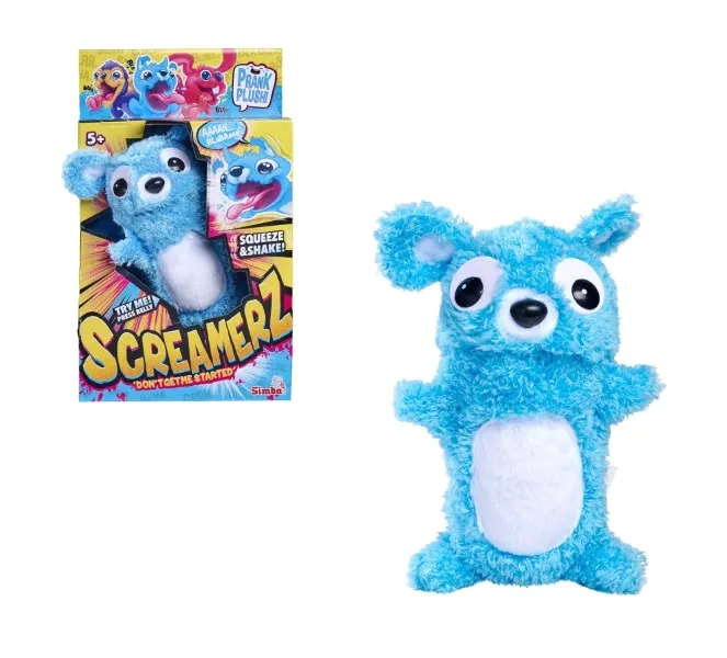 Puszysty miś z zabawną funkcją elektroniczną. Po naciśnięciu brzuszka wydaje zabawne dźwięki i otwiera buzię. ScreamerZ Miś to niezbędny towarzysz do robienia happy pranków! Rozśmiesz kolegów, rodzeństwo, a nawet rodziców!