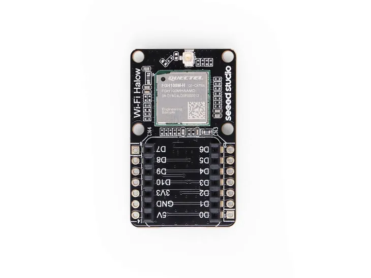 Moduł WiFi HaLow przeznaczony do współpracy z płytkami Seeed Studio XIAO, oparty na układzie FGH100M-H. Obsługuje standard IEEE 802.11ah i pracuje w paśmie 902-928 MHz, zapewniając zwiększony zasięg transmisji oraz lepszą penetrację sygnału w porównaniu z klasycznym WiFi 2,4 GHz. Rozwiązanie znajduje zastosowanie w systemach IoT wymagających komunikacji na duże odległości przy niskim poborze mocy.