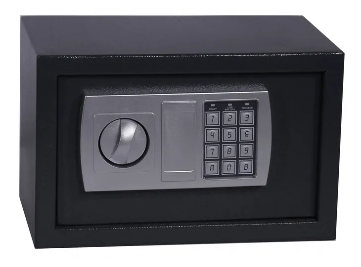 Sejf o wymiarach 31x20x20 cm, przeznaczony do użytkowania w firmie, biurze i w domu. Służy do przechowywania różnych przedmiotów (bez wymogów certyfikacyjnych).