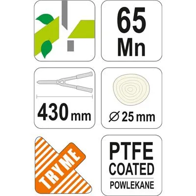 Sekator o długości 43cm umożliwia pielęgnację niewielkich drzew, krzewów i innych roślin ozdobnychdługość: 43cmprzyjemna w dotyku rękojeśćostrza wykonanie ze stali manganowej (65 Mn) zapewnia dużą odporność na ścieraniepowierzchnia górnego ostrza pokryta warstwą politetrafluoroetylenu (PTFE) zwiększa komfort pracy.maksymalna średnica cięcia 25mm