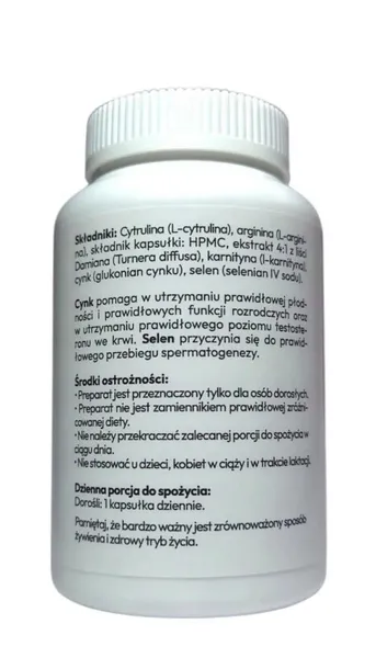 Wspiera potencję i erekcję - L-arginina wspomaga rozszerzanie naczyń krwionośnych i poprawia krążenie w prąciu, ułatwiając osiągnięcie i utrzymanie erekcji.