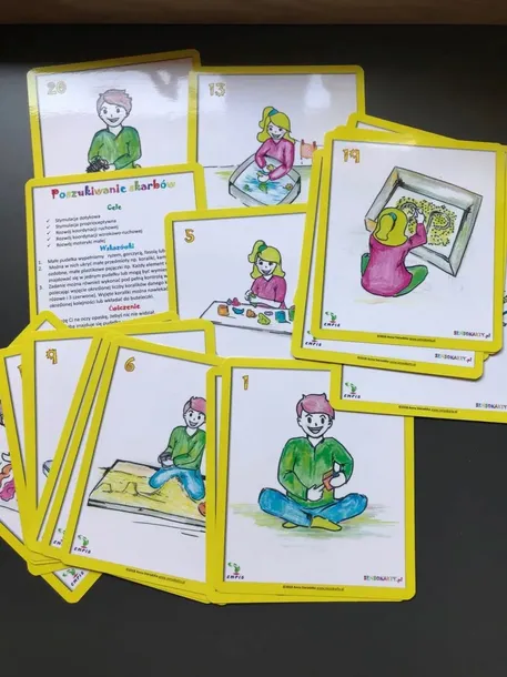 W każdej talii (oddzielnej dla poszczególnych systemów sensorycznych) znajduje się ok. 20 kart z ćwiczeniami.