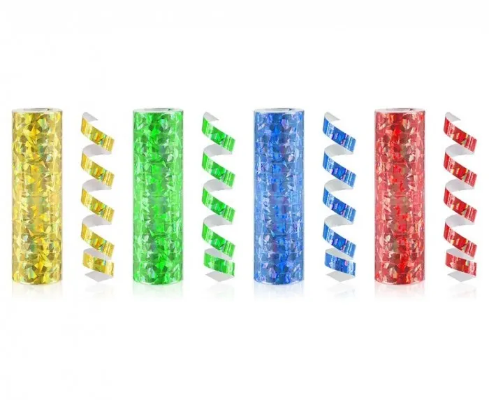 Serpentyna holograficzna - 4 m / 1 szt. Szukasz pomysłu, jak urozmaicić swoją imprezę i świętować z klasą? Chcesz miejscu zabawy dodać koloru i blasku? Serpentyny papierowe będę niezawodne! Dzięki nim w prosty sposób przystroisz mieszkanie czy salę. Organizujesz Sylwestra? Sięgnij po przykuwające wzrok serpentyny sylwestrowe. Zajmujesz się dekoracjami weselnymi? Zaopatrz się w kolorowe serpentyny na wesele! Błyszczące serpentyny holograficzne możesz zawiesić na żyrandolu, drzwiach i oknach oraz pod sufitem. Także położona na stole serpentyna holograficzna prezentuje się bardzo ładnie. Serpentyny holograficzne będą błyszczeć, dodając imprezie blasku i szyku. Z powodzeniem możesz ich użyć do przyozdobienia prezentu! Opakowanie - 1 szt. 1 sztuka serpentyny to aż 18 pasków o długości 4 m!!