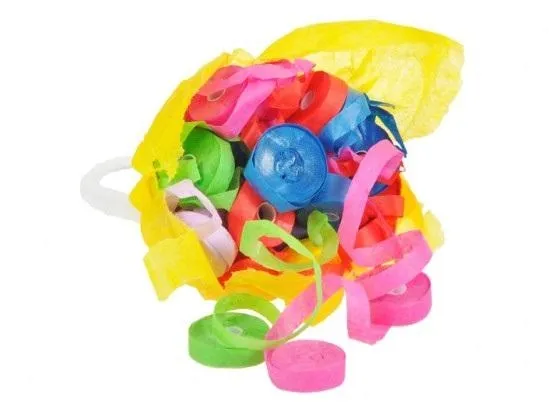 Worek z papierowymi serpentynami do rzucania ręką. Zawiera 29 sztuk 6m papierowych serpentyn. Instrukcja obsługi: Nawlec woreczek z serpentynami na środkowy palec tak, aby znajdował się w dłoni. Ostrożnie rozerwać woreczek, żeby jego zawartość pozostała w zamkniętej dłoni. Następnie energicznie rzucić serpentyny w wybranym kierunku. Wymiar: 65mm x 75mm x 60mm (szer. x wys. x gł.)