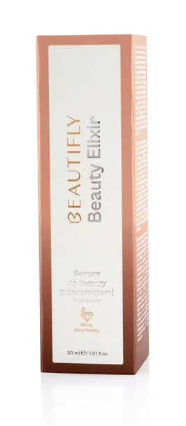Odkryj potęgę eliksiru piękna z naszym serum do twarzy Beauty Elixir marki BEAUTIFLY, dzięki któremu Twoja skóra stanie się aksamitnie gładka, napięta i pełna młodzieńczego blasku. Ultralekka, jedwabista formuła rozpieszcza skórę, rozprowadzając się z niesamowitą delikatnością, by zapewnić uczucie orzeźwienia i głębokiego nawilżenia. Serum zostało wzbogacone o ekskluzywne składniki antyoksydacyjne o właściwościach ujędrniających. Dzięki temu redukuje oznaki starzenia, jednocześnie zapewniając efekt widocznego wygładzenia. Jego działanie rozświetlające ożywi cerę, nadając jej zdrowy, promienny wygląd, a jednocześnie zapewni kojące uczucie regeneracji i odnowy. Każda aplikacja Beauty Elixir staje się czymś więcej niż zwykłą pielęgnacją - to podróż w świat zmysłowych doznań. Wyrafinowany zapach pobudza zmysły, otwierając drzwi do świata luksusu i elegancji. Delikatne nuty zapachowe otulają skórę, przekształcając codzienną rutynę pielęgnacyjną w moment pełen relaksu i odprężenia. Pozwól sobie na chwilę przyjemności, w której czas zwalnia, a Ty zanurzasz się w harmonii i spokoju, przygotowując swoją skórę do wyzwań nowego dnia.