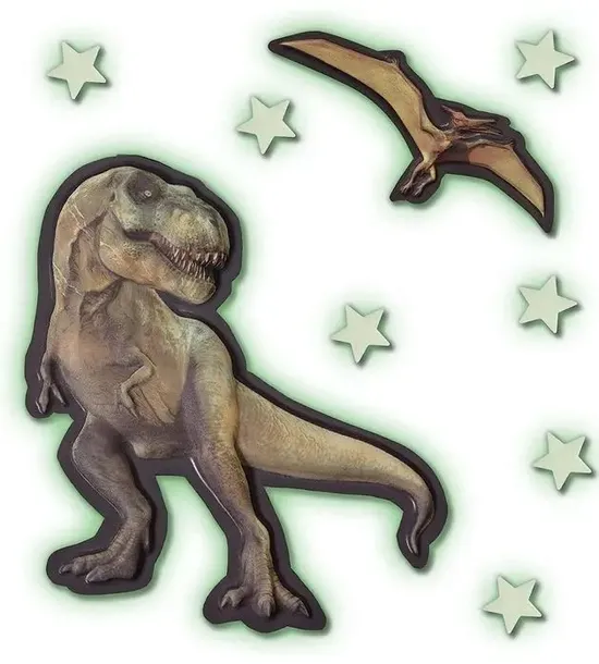 Ta super fajna dekoracja nada każdemu pokojowi dziecięcemu niepowtarzalnego efektu w dzień i w nocy. 15 świecących gwiazd uzupełnia niebo dinozaurów i sprawia, że świetlista dekoracja robi wrażenie. Po prostu przyklej do ściany lub sufitu za pomocą naklejek, zgaś światło i podziwiaj piękną dekorację!