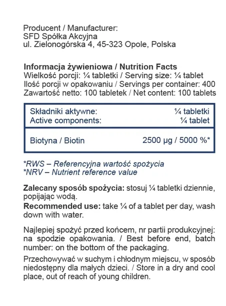 SFD Biotyna 10000 Suplement Diety 100 Tabletek