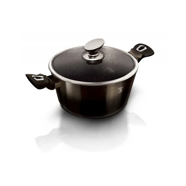 Naczynia z serii SHINY BLACK EDITION firmy BERLINGER HAUS wykonane są z wysokiej klasy odlewanego aluminium pokrytego wewnątrz potrójną powłoką granitową (marble) o bardzo wysokim współczynniku twardości. Powłoka zewnętrzna w kolorze czarnym. Te atrakcyjne i modne naczynia wyposażone są standardowo w uchwyty typu SOFT TOUCH (silikon handle). Przystosowane do wszystkich rodzajów kuchenek: gazowa, elektryczna, ceramiczna, halogenowa, indukcyjna. System TURBO INDUCTION (bardzo szybko nagrzewają się) pozwala zaoszczędzić nawet 35% energii.