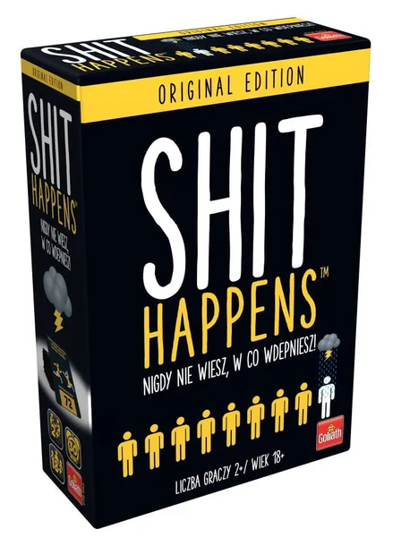 Życie to kręta droga, wybrukowana żałosnymi sytuacjami, które napotykamy, gdy najmniej się ich spodziewamy... więc spróbujmy się z nich pośmiać! Shit Happens to gra, w której na kartach przedstawiono naprawdę pokręcone sytuacje. Waszym zadaniem będzie ułożenie ich w odpowiedniej kolejności, zgodnie ze specjalistyczną skalą na Gównometrze! Aby zdobyć kartę odgadnij jej wskaźnik rozpaczy! Zdobywca 10 kart zostaje zwycięzcą!