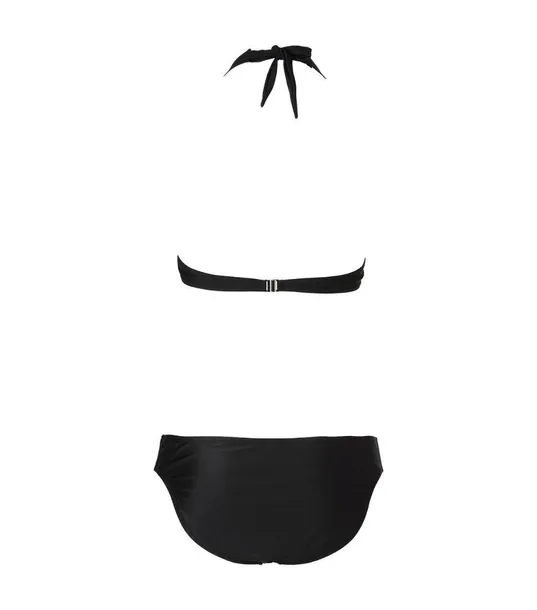 - Damskie bikini typu push-up z wiązaniem na szyi i jednolitym kolorem. Posiada regulowany pasek na szyję i kokardkę między miseczkami