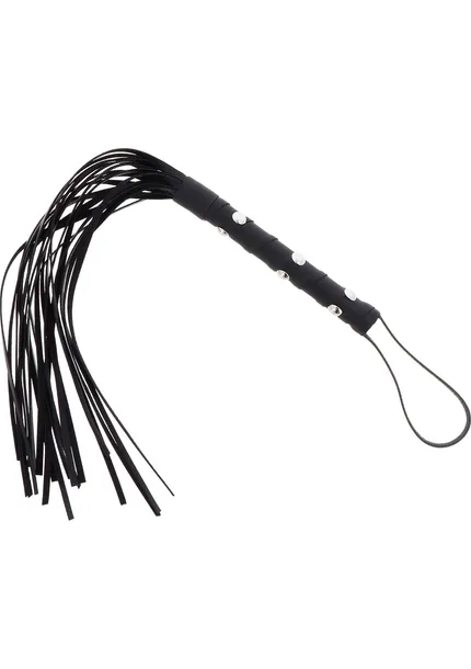 Wykonany z wytrzymałej skóry PU, wyposażony w ćwieki wzdłuż rzemieni, które wzmacniają efekt uderzenia i dodają surowego charakteru każdej sesji BDSM. Krótsza konstrukcja (56 cm) zapewnia większą kontrolę nad intensywnością, co czyni go idealnym dla dominujących partnerów lub osób pragnących eksplorować bardziej intensywną stronę zabawy.