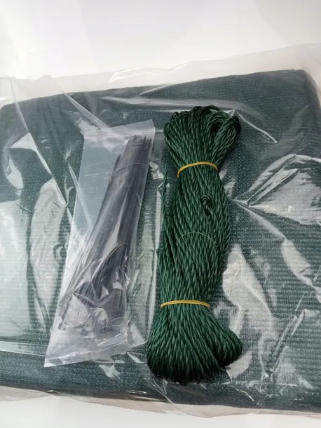Wysokość całkowita: ok. 2 cmSzerokość (w zależności od wielkości): ok. 6 m / 10 m / 15 m / 20 m / 25 m / 30 m / 50 mTolerancja rozmiaru: +/- 2%Szerokość na otwór mocujący wynosi ok. 1 cmOdległość między mocowaniem otworów wynosi ok. 1,5 cmWykonane z siatki HDPE (160 g/m2)W kolorze ciemnozielonym