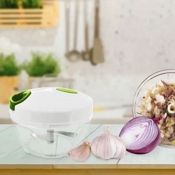 Przydatny siekacz do warzyw, ziół, owoców, cebuli oraz orzechów. Dzięki prostemu mechanizmowi, który uruchomimy za pomocą pociągnięcia uchwytu w pokrywie, siekacz jest łatwy w użytkowaniu. Przezroczysta forma pojemnika pozwoli nam kontrolować stopień rozdrobnienia. Ilością pociągnięć regulujemy stopień rozdrobienia. Podwójne ostrza poradzą sobie bez problemu z rozdrabnianiem. Rozdrabniacz jest wytrzymały oraz wygodny w użyciu, bardzo przydatny w każdej kuchni. Nie zaleca się mycia w zmywarce do naczyń. Oryginalny produkt czeskiej marki Orion. Wyprodukowano zgodnie z europejskimi standardami.