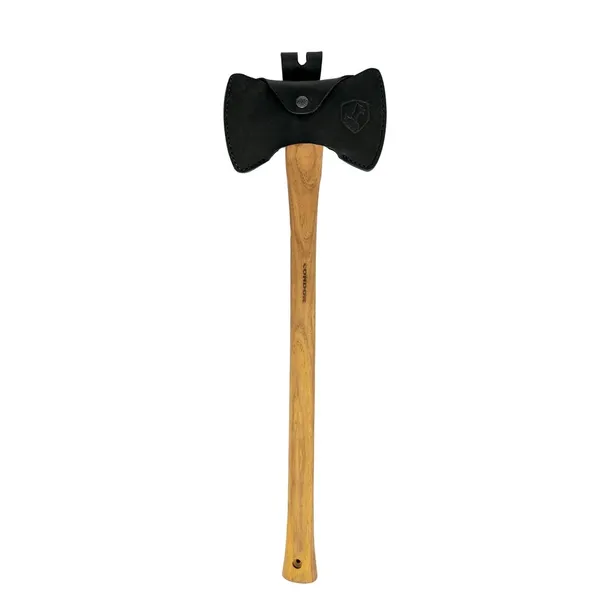 Siekiera Double Bit Michigan dostarczana jest wraz z ręcznie wykonaną, skórzaną pochewką w kolorze czarnym, zapinaną na nap. Skórzana osłona na ostrze umożliwia bezpieczny transport.