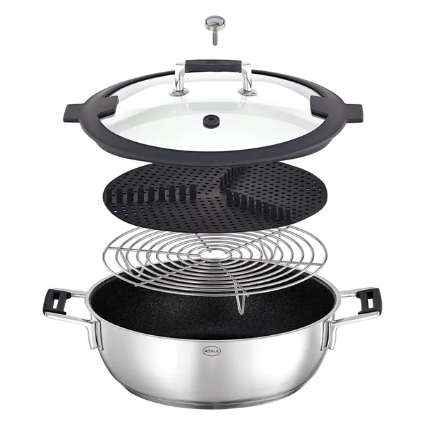 - W komplecie termometr, za pomocą którego można kontrolować proces gotowania.