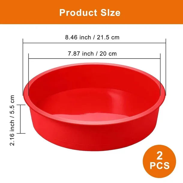 - ?[Wysokiej jakości materiał silikonowy]Okrągła forma do pieczenia wykonana jest z silikonu spożywczego wolnego od BPA, bezpiecznego, trwałego, odpornego na wysokie temperatury, nietoksycznego, bez zapachu, niełatwego do odkształcenia lub pęknięcia, wielokrotnego użytku. Rozmiar to 21,5*20*5,5cm. 8-calowe ciasto jest odpowiednie dla 3-5 osób, idealne na urodziny, przyjęcia, festiwale.