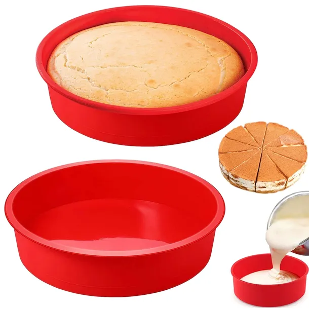 - ?[Łatwa w użyciu]Okrągła forma do ciast silikonowa jest bardzo elastyczna, ma nieprzywierającą powłokę, wypieki nie przyklejają się do dna formy, można je łatwo wylać, po posmarowaniu ciasta masłem, ciasto będzie łatwiejsze do wyjęcia z formy, a otrzymasz idealne okrągłe ciasto.