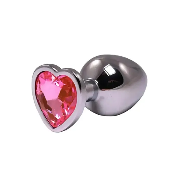 Srebrny korek analny w kształcie serduszka z różowym kryształem