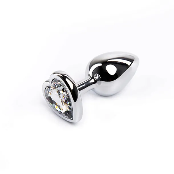 Silver small heart-shaped butt plug with white crystal