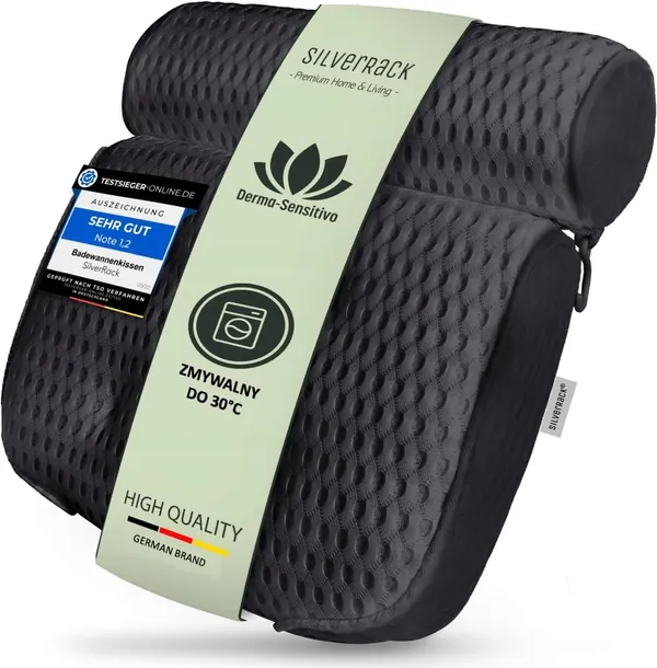 - Poduszka łazienkowa SilverRack została zaprojektowana z inżynierami, aby zapewnić doskonały komfort leżenia. Poduszka zapewnia maksymalne odciążenie pleców i karku oraz zapewnia relaksujące chwile relaksu