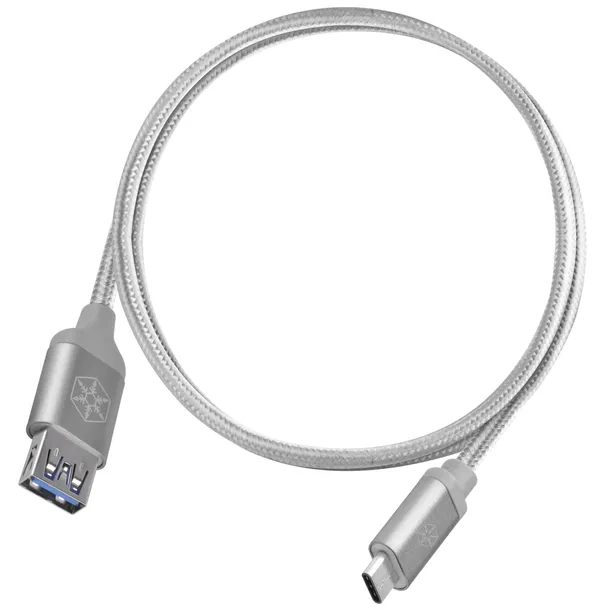 Silverstone SST-CPU05S-500 obustronny kabel USB Type-C do USB Type-A pokryty nylonem, wytrzymały, 0.5m, srebrny