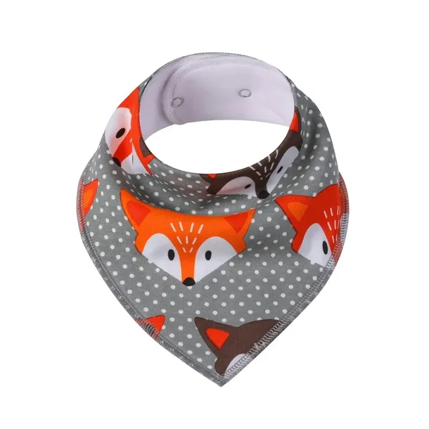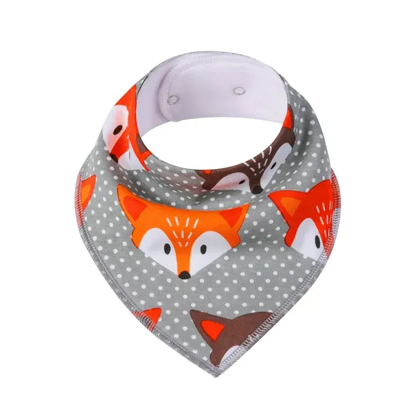 Śliniaczek bawełniany marki Simed w liski. Śliniak ma wygodne i praktyczne zapięcie na zatrzask, z możliwością regulowania długości. Miękki, oddychający i miły w dotyku materiał nie podrażni skóry dziecka.