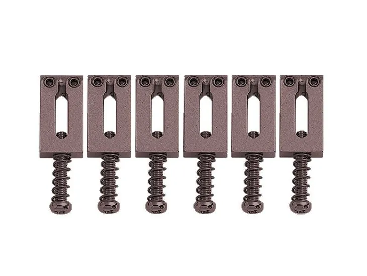 Komplet sześciu, wysokiej klasy, stalowych siodełek do mostków stałych i tremolo. Na załączonym zdjęciu wymiary pojedynczego siodełka.