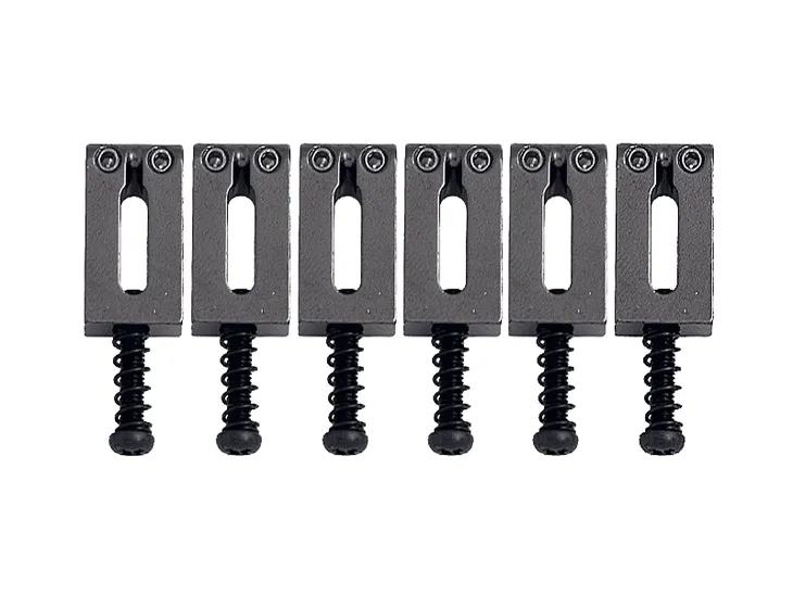 Komplet sześciu, wysokiej klasy, stalowych siodełek do mostków stałych i tremolo. Na załączonym zdjęciu wymiary pojedynczego siodełka.