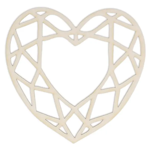 Dekoracja wykonana z kartonu przedstawia geometryczne serduszko.