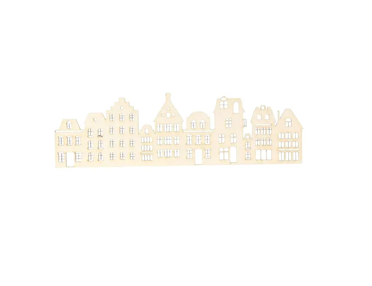 Dekor wykonany z kartonu przedstawiający ciąg stylowych kamieniczek.