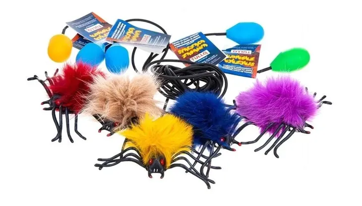 Ponadczasowa zabawka, przeznaczona dla dzieci powyżej 3-go roku życia. Po naciśnięciu na pompkę zwierzątko zaczyna skakać. Poprzez zastosowanie naturalnego futra pająk sprawia wrażenie żywego. Nadaje się również do zabawy z kotem oraz psem