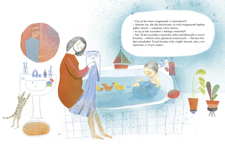 Trudno odpowiedzieć dziecku na wszystkie pytania. Niektóre z nich nadal krępują rodziców i dziadków, którzy korzystają z odpowiedzi często mijających się z prawdą. Te najbardziej dociekliwe często dotyczą cielesności, seksualności i prokreacji. Zdarza się, że udajemy, że pytanie nie padło, zmieniamy temat lub opowiadamy historie o bocianie i kapuście z nadzieją, że kolejne pytania nie padną. A przecież oswajanie się z własnym ciałem towarzyszy dzieciom już w okresie niemowlęcym, a pytanie „skąd jestem?”, to jedno z najważniejszych, które pada z ust dziecka w bardzo wczesnym dzieciństwie. Tymczasem temat prokreacji i nazywanie części ciała, które biorą udział w akcie poczęcia wciąż nie przechodzi nam przez gardło. Dziecięce pytania dotyczące intymności za każdym razem budzą w nas zakłopotanie. W książeczce Skąd jestem? podpowiadamy rodzicom, dziadkom i opiekunom jak rozmawiać z dziećmi na temat poczęcia i narodzin. Tekstowi, w którym padają słowa „cipka” i „siusiak” towarzyszą piękne kolorowe ilustracje Marianny Sztymy. Mamy nadzieje, że nasza książeczka jest piękną intymną historią, która nikogo nie zawstydzi.