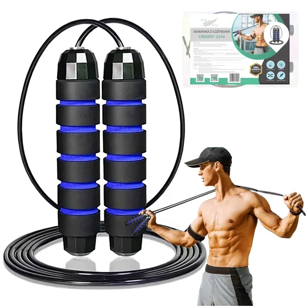 ➡️ Skakana z regulowaną linka o długości 2,8 m wygodną rączką i łożyskami. Antypoślizgowy uchwyt, metalowa mocna linka. NIE “pląta się”
