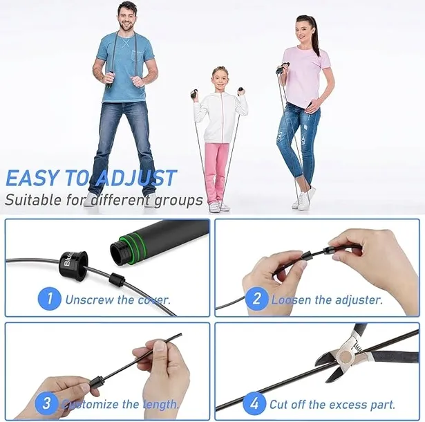 Możesz w kilka sekund dostosować długość skakanki do swojego wzrostu i stylu treningu. W zestawie znajdują się również dodatkowe klamry regulacyjne, co podnosi wygodę użytkowania.