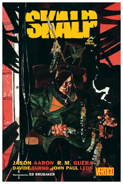 Drugi tom bestsellerowej amerykańskiej serii, która brawurowo przeniosła czarny kryminał w realia świata współczesnych Indian północnoamerykań Zły Koń wychował się w Rezerwacie Prairie Rose, zamieszkanym przez Indian z plemienia Oglala Lakota. Jako bardzo młody chłopak uciekł od biedy, narkotyków i przemocy. Został agentem FBI. Po latach zostaje zmuszony przez swojego szefa do powrotu do Prairie Rose. Ma doprowadzić do skazania Lincolna Czerwonego Kruka, miejscowego bossa świata przestępczego. Dash szybko przekonuje się, że życie w Rezie wcale się nie zmieniło rządzą gangsterzy, a codzienne życie zwykłych mieszkańców to wegetacja. Dashiell wiele w życiu widział, ale nawet nim wstrząsają dwa koszmarne zabójstwa. Jedną z ofiar jest matka Złego Konia. Jej oskalpowane ciało zostaje znalezione na pustyni...Głównymi twórcami Skalpu są amerykański scenarzysta Jason Aaron (Thor, Original Sin, Wolverine) i mieszkający w Hiszpanii serbski rysownik R. M. Gura (Wieczny Batman, Django Unchained).