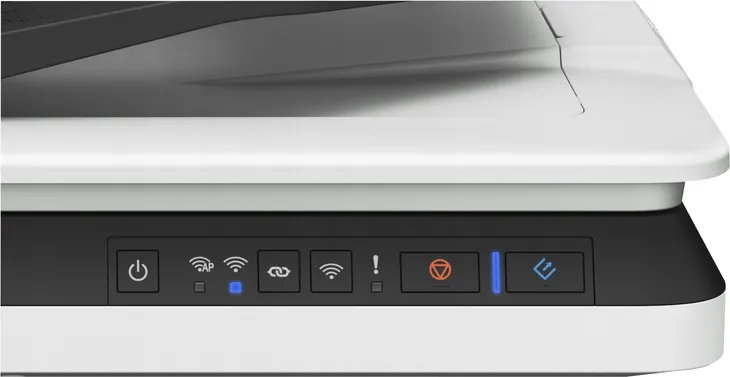 Skaner o rozdzielczości 1200 x 1200 dpi skanujący z prędkością 25 stron na minutę. Posiada podajnik na 50 arkuszy.
